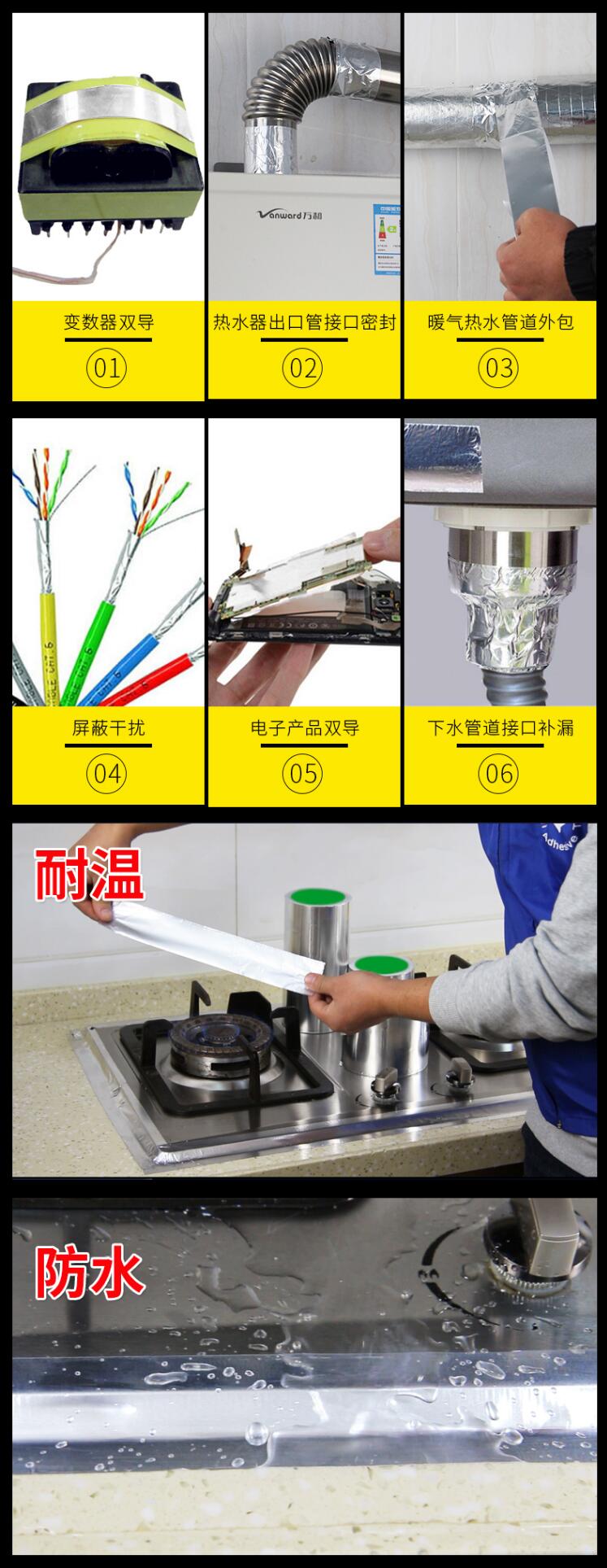 用在冷(熱)氣管道的包扎,一般做冷(暖)氣工程和熱水器廠家用的比較多;導(dǎo)電鋁箔用的也比較多,主要適用于各類變壓器、手機(jī)、電腦、PDA、PDP、LCD顯示器、筆記本電腦、復(fù)印機(jī)等各種電子產(chǎn)品內(nèi)需電磁屏蔽的地方,主要就是為消除電磁干擾(EMI),隔離電磁波對(duì)人體的危害,避免不需要之電壓或電流而影響功能。