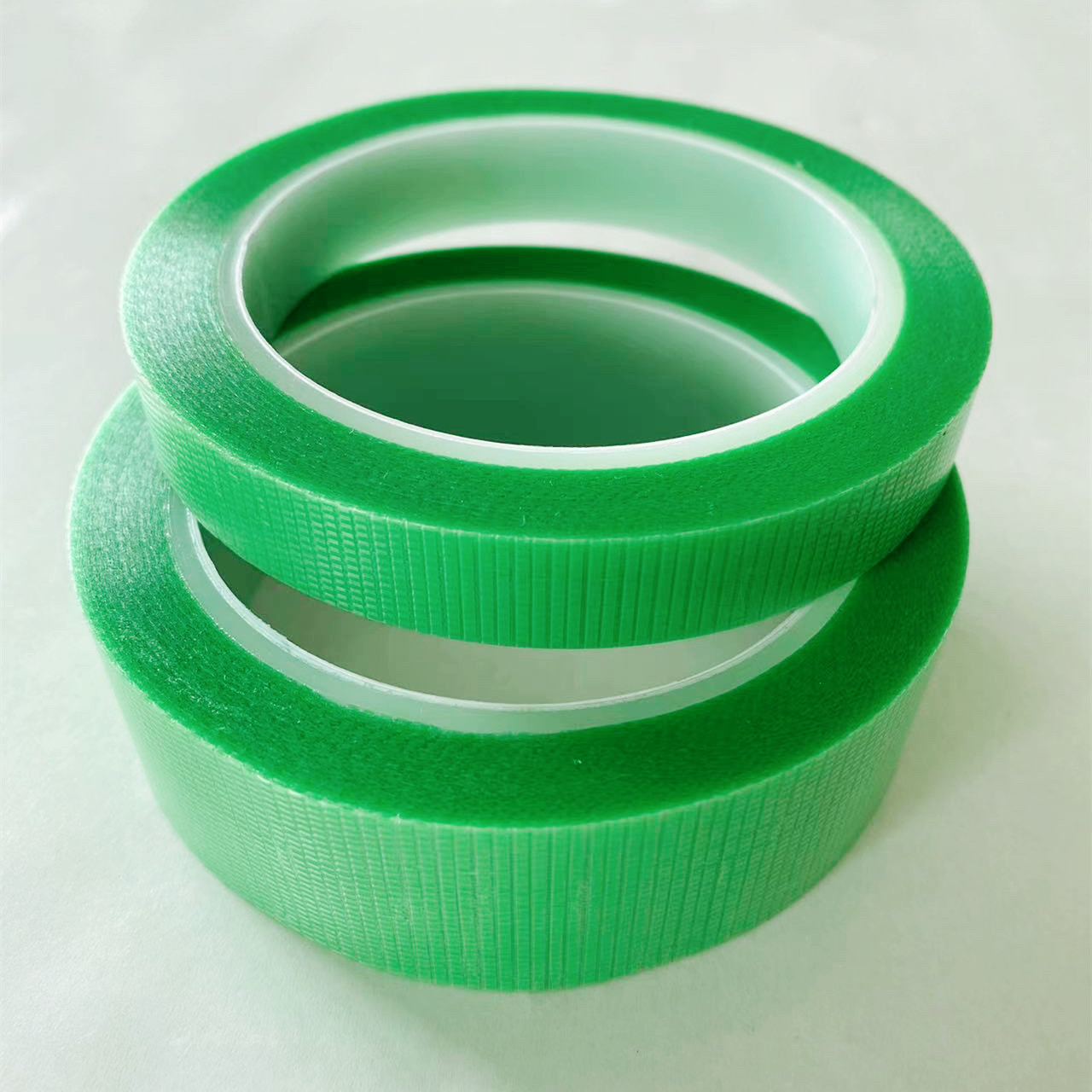 該膠黏帶以PE和PET為基材,進(jìn)口耐溫樹脂為涂層。經(jīng)涂布設(shè)備后進(jìn)150℃烘箱進(jìn)行高溫塑化后生成穩(wěn)定的高分子壓敏膠層。